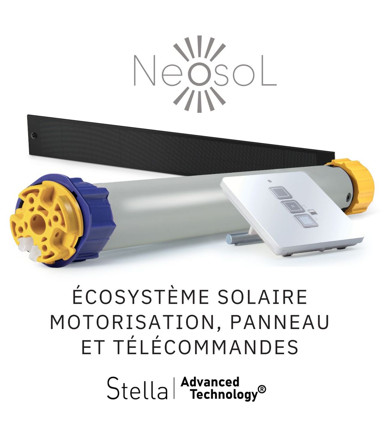 La motorisation solaire NEOSOL développée par Stella Advanced Technology ® est parfaitement adaptée aux produits Profalux. Avec plus de 500 000 volets roulants solaires installés en France, elle est le fruit d'un savoir-faire acquis depuis de nombreuses années. Cette expertise a permis d'optimiser la performance, la fiabilité et l'endurance des volets roulants de la gamme Visio Solaire sans aucune concession sur la qualité et le confort.